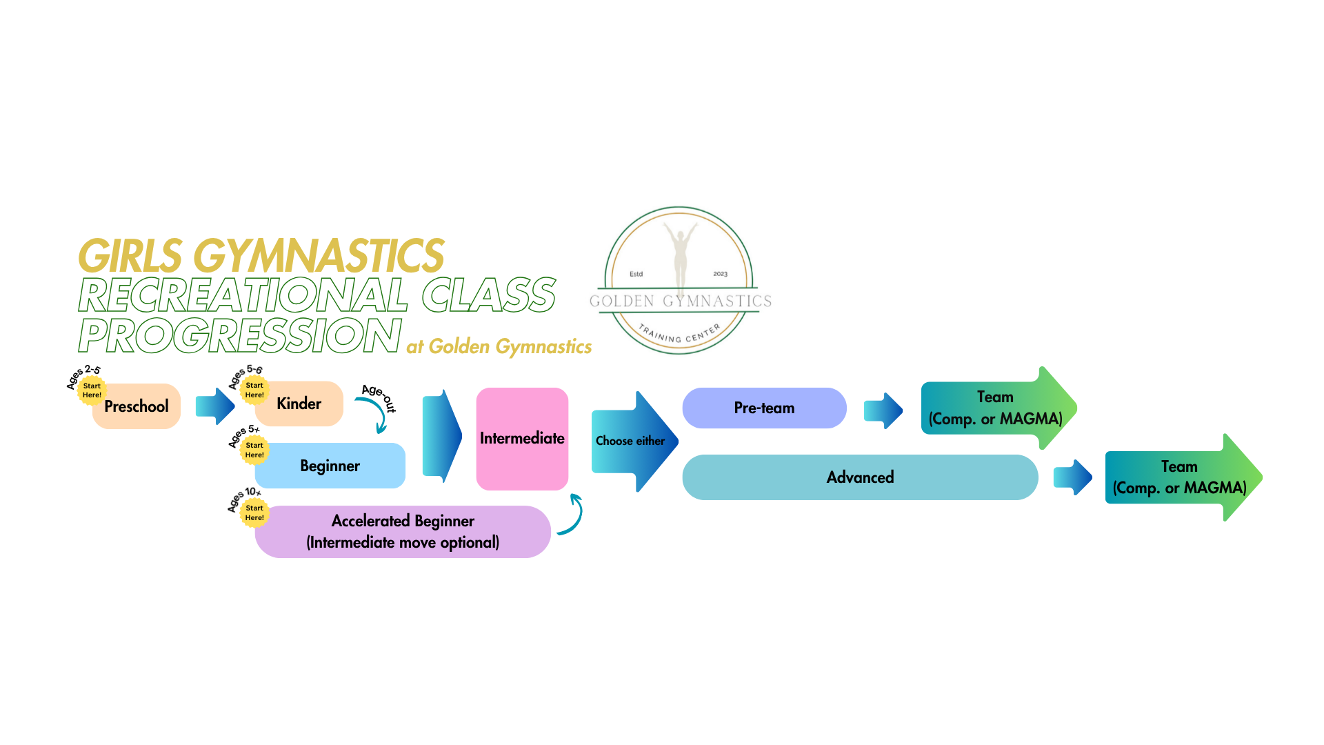 Golden Gymnastics offers a diverse range of recreation classes designed to cater to various skill levels and ages, providing a comprehensive and enjoyable gymnastics experience for all.